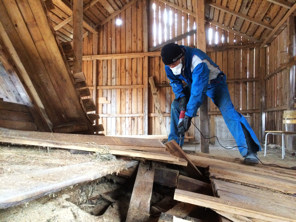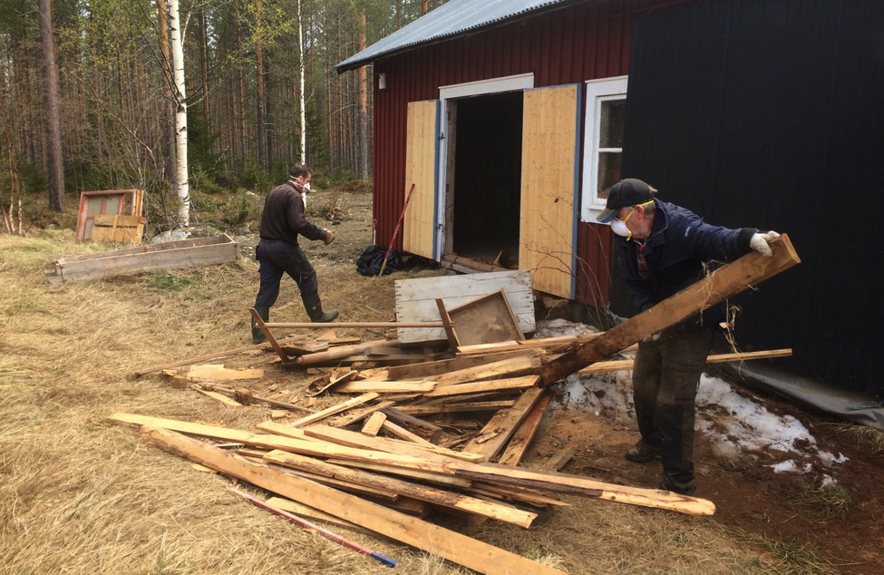 Klappat och klart. Sören A hämtar Sören M:s kviga som han sköt från tornet på kraftledningen mot Daglösten till.