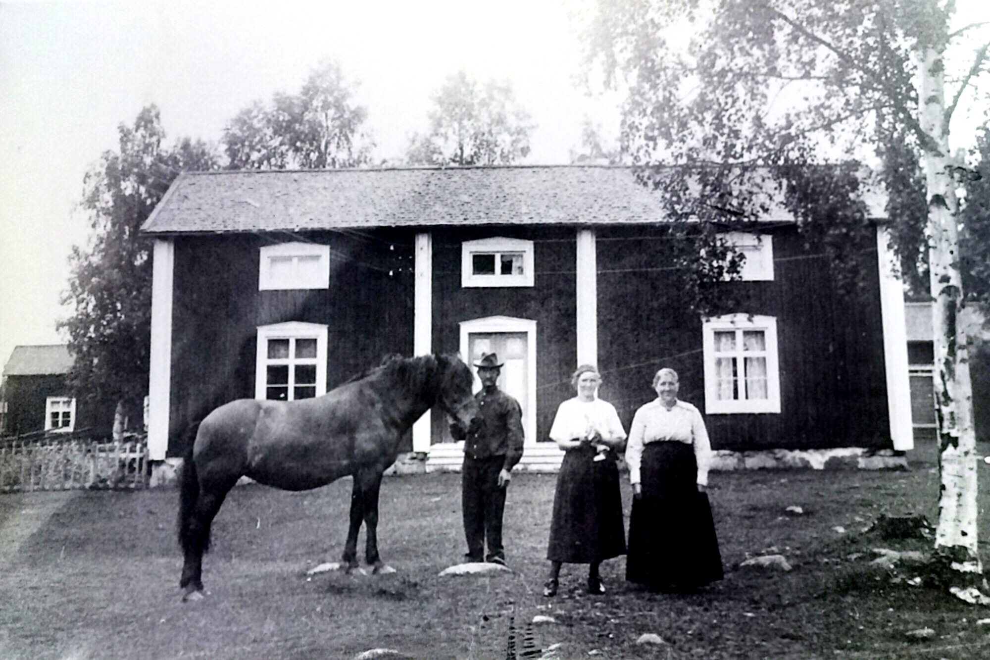 Önnesmark 7:3 .Karl Nygren håller i hästen. Längst till höger makan Ulla Stina , född Samuelsson. Kvinna i mitten är Göta Marklund, född 1902. Bilden kan vara tagen före 1928 då Göta gifte sig med Andreas Persson, Önnesmark 1:4