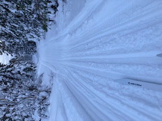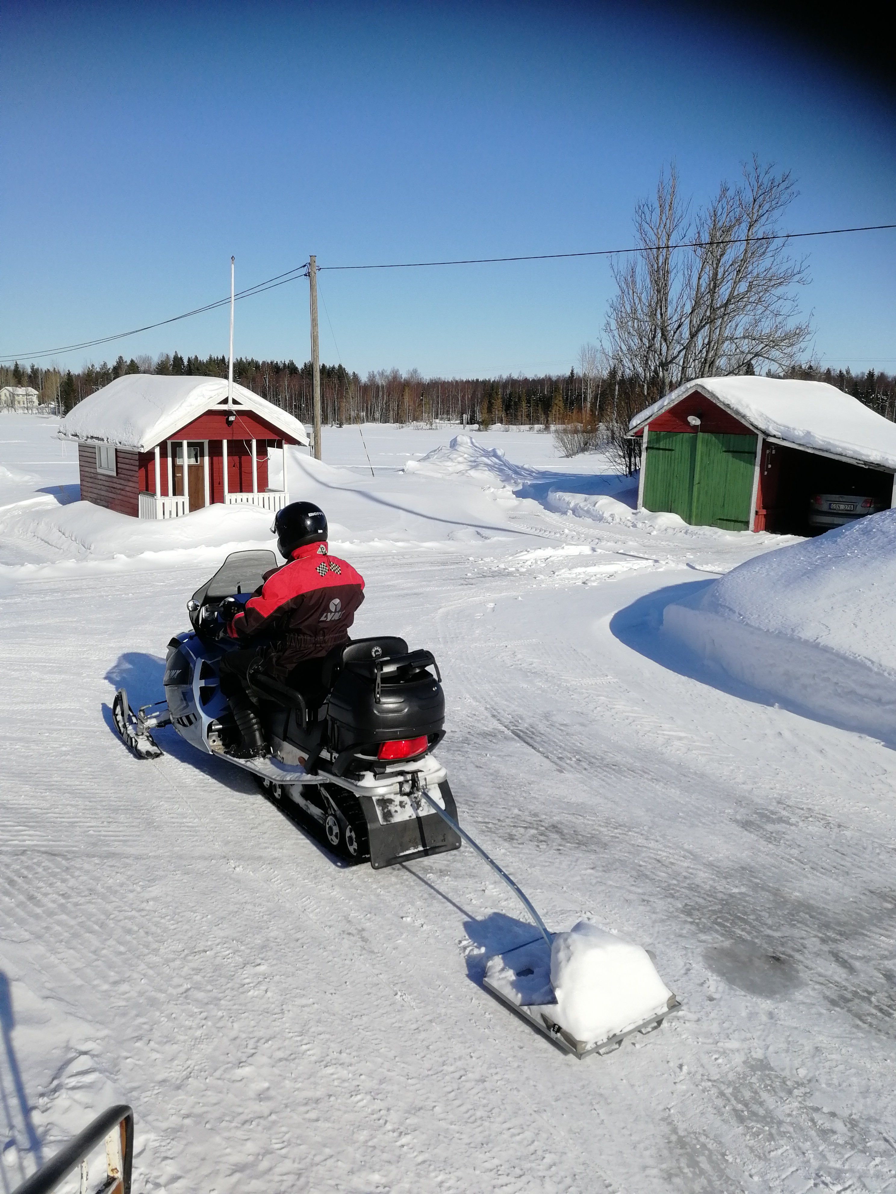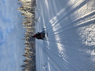 Så är vi igång med att göra skidspår. Mycket snö finns det. Vi försöker att samsas på de leder som finns inom byn. Vilket innebär att där det finns plats önskar vi att skoteråkarna undviker att köra på skidspåret, och på andra delar är det lite trängre så får skidåkarna acceptera att det kanske inte blir lika bra, då det är svårt att undvika att det blir kört på skidspåret. Men vi är öppna för tips hur vi kan göra det bättre.
