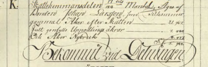 Att hemmansdelningen var långt gången framgår tydligt när byns marker skiftades i början av 1800 talet. På kartan från 1804 finns Johan Larssons nya hemman med i underlaget, med skiften och allt, och markerad på kartan, men bara som en tomt utan byggnader.