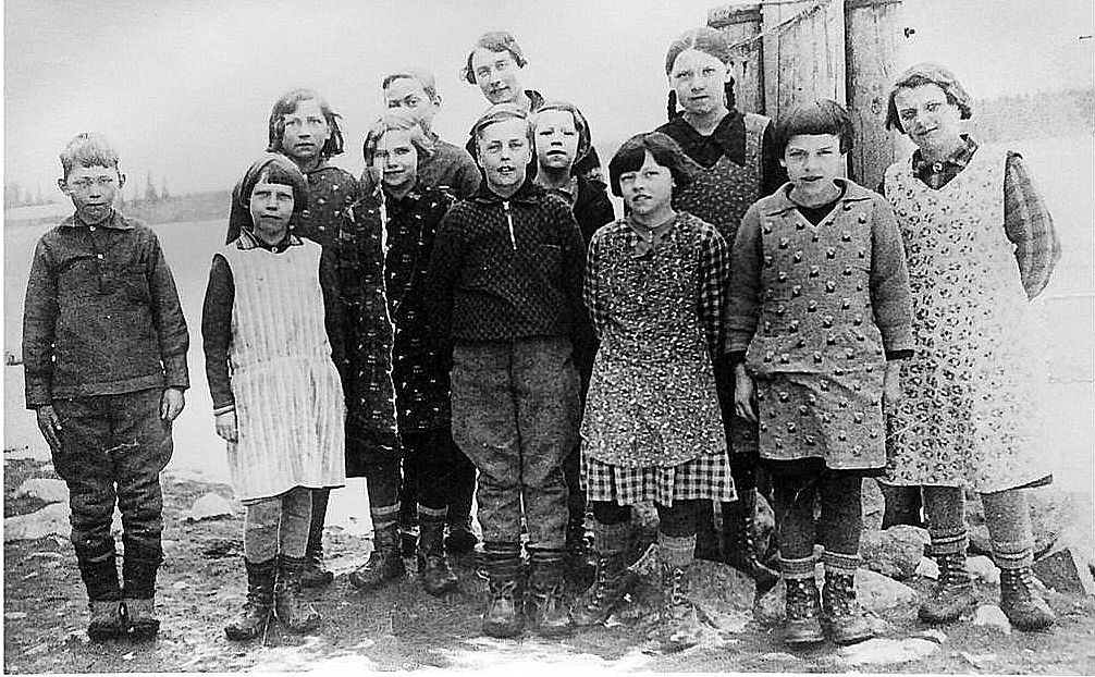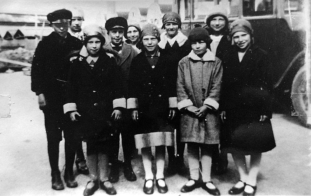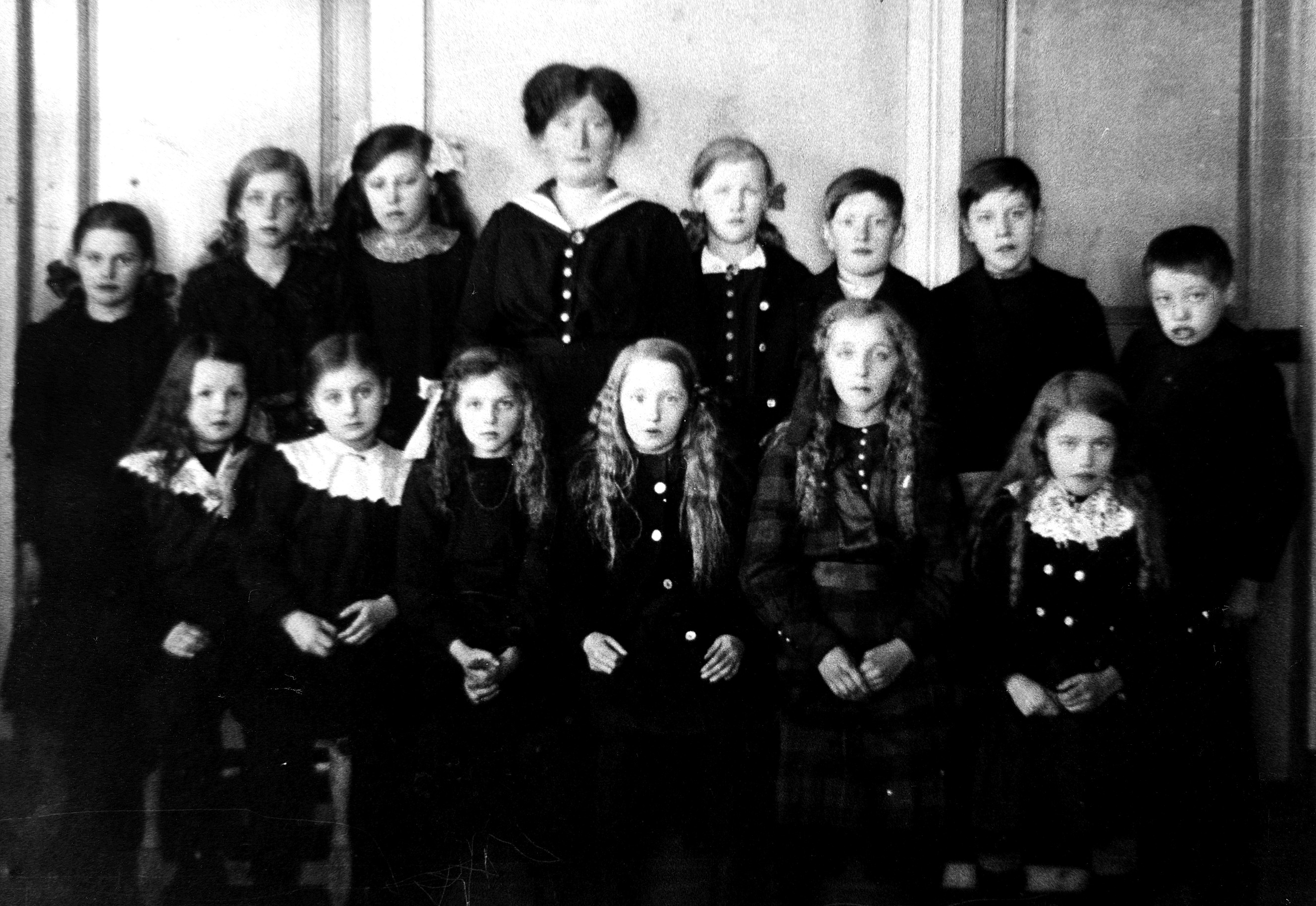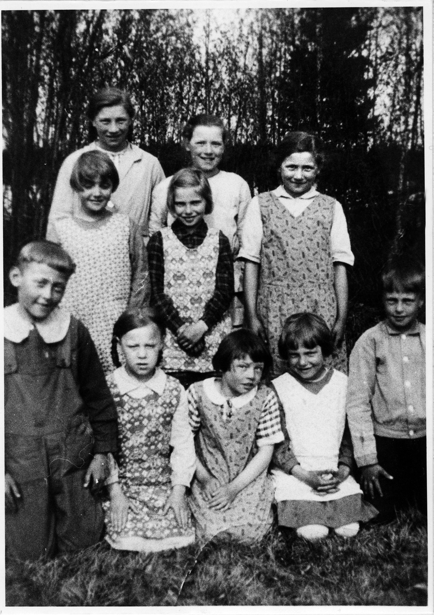 Skolfoto taget omkring 1930. Längst bak står Elsa Markström (född 1917), Margit Markström (född 1920) samt Sofia Markström (född 1921) .