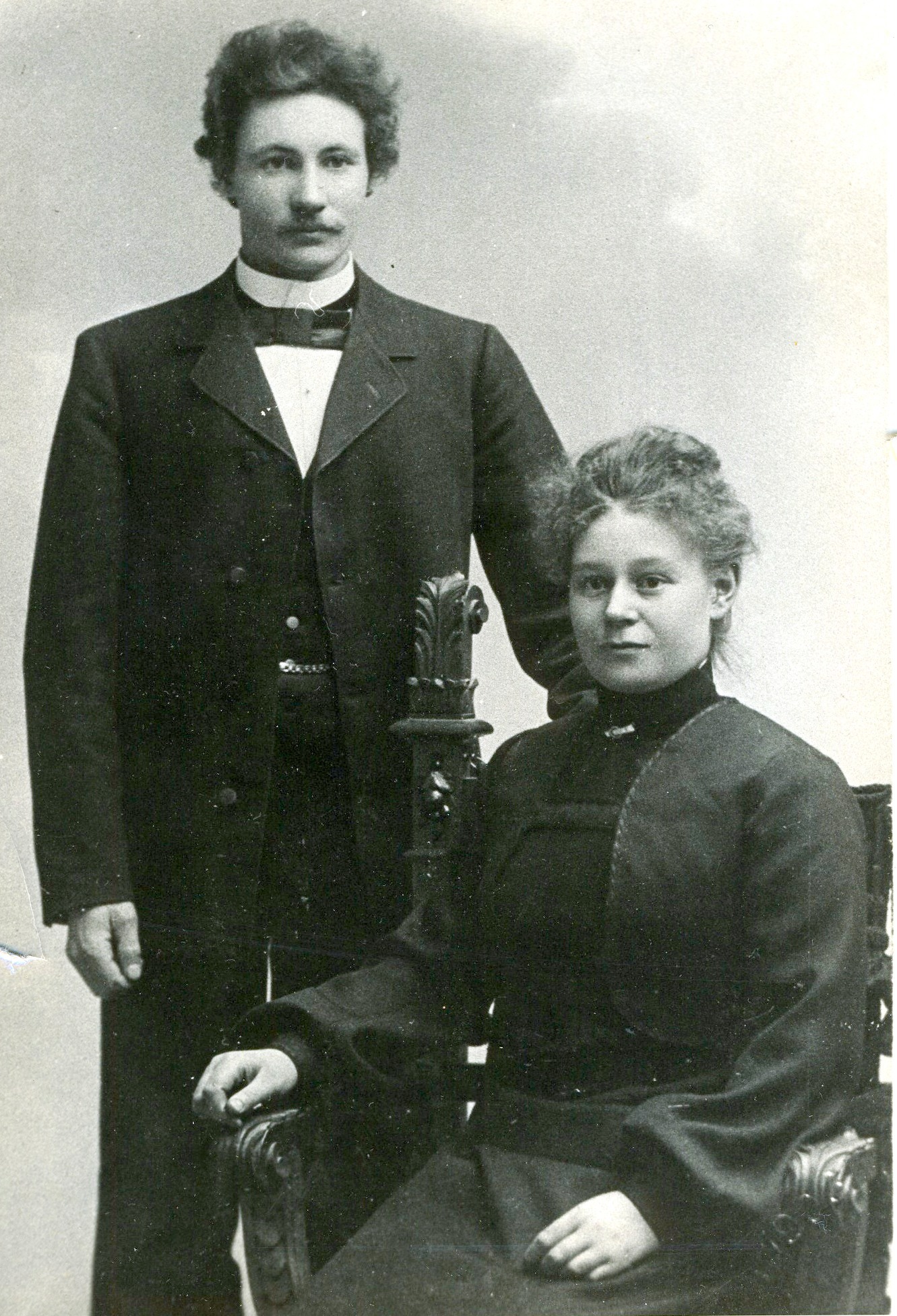 Ant Vallgrens son Edvin Vallgren (1890-1944) var gift två gånger. Hans första fru var Amy Maria Johansson från Bergsbyn (1893-1931). De bosatte sig i Södra Bergsbyn, där de fick två döttrar, Sigrid och Britt, I sitt andra äktenskap (bilden) var han gift med Ester Vallgren från Fjälbyn ( 1893-1973). Källa: Per Vallgren, barnbarn till Edvin Vallgren.( 6:76)