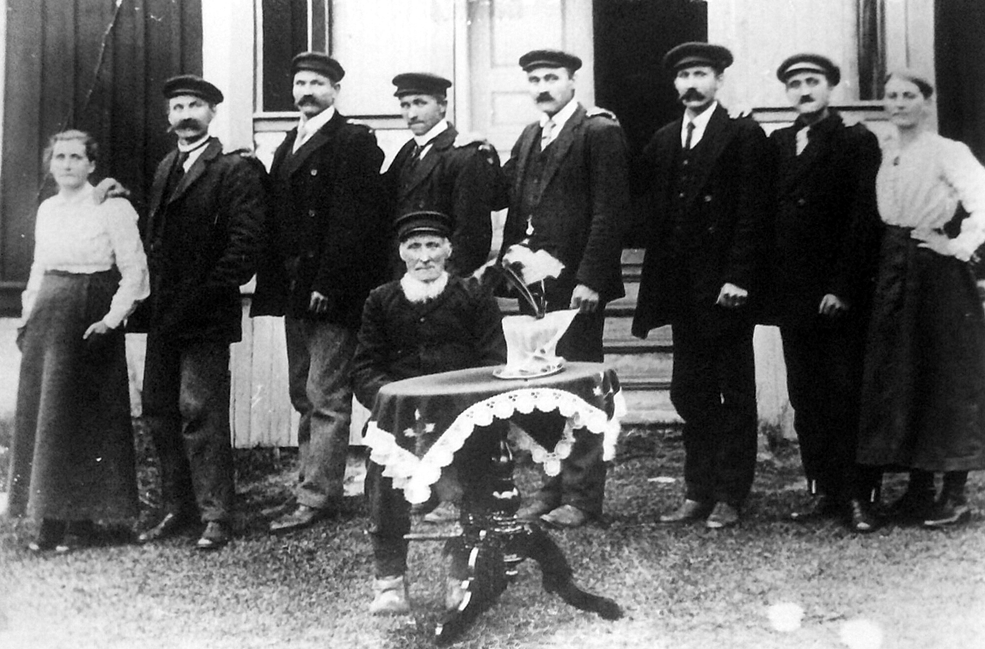 Konrad Vallgren (f.1875), Henning Vallstedt, (f.1907) Anna Bohlin, Karl Forsman, Lappvik och Emil Vallgren (f 1885)