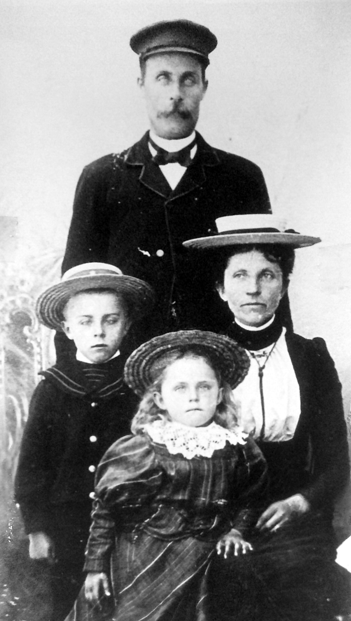 August Vallstedt med familj : August, f 1873. Jenny Kristina Andersson, f 1876, Barnen Henning ( 1907, Helmer (1908) och Svea (1910), (Bild 8:96)