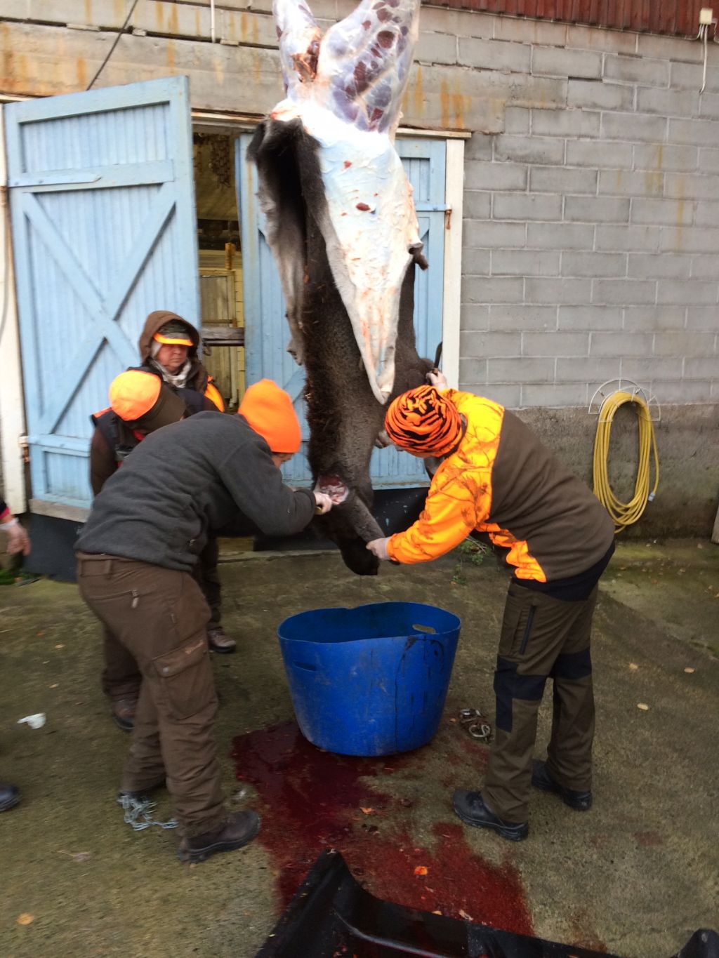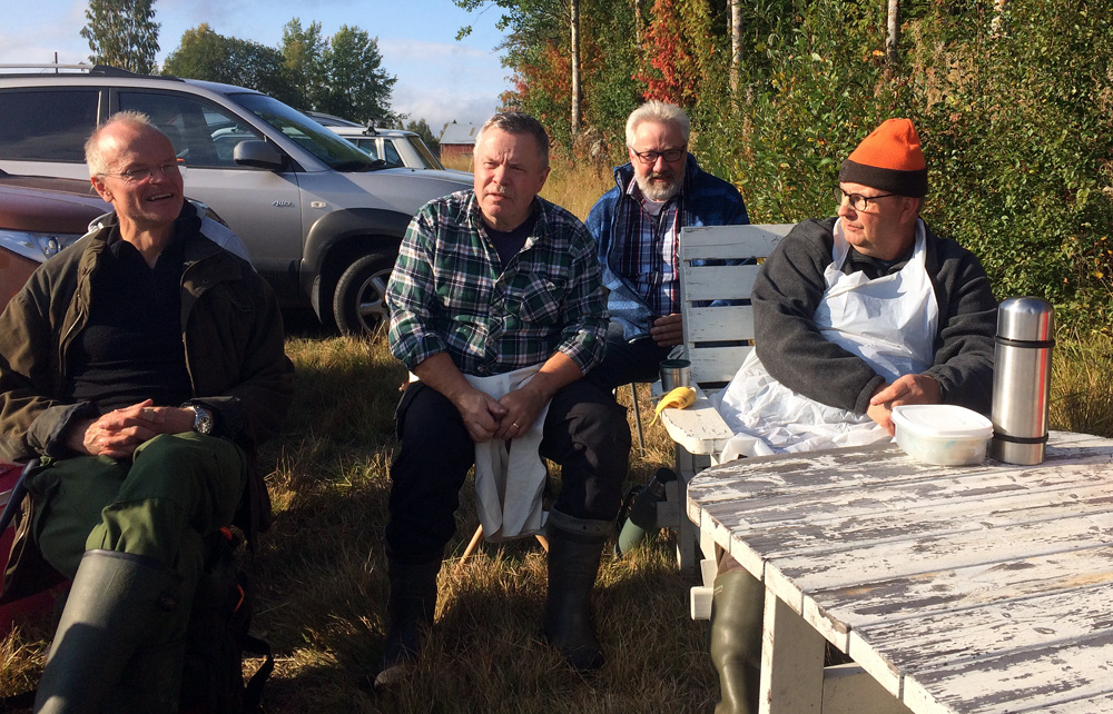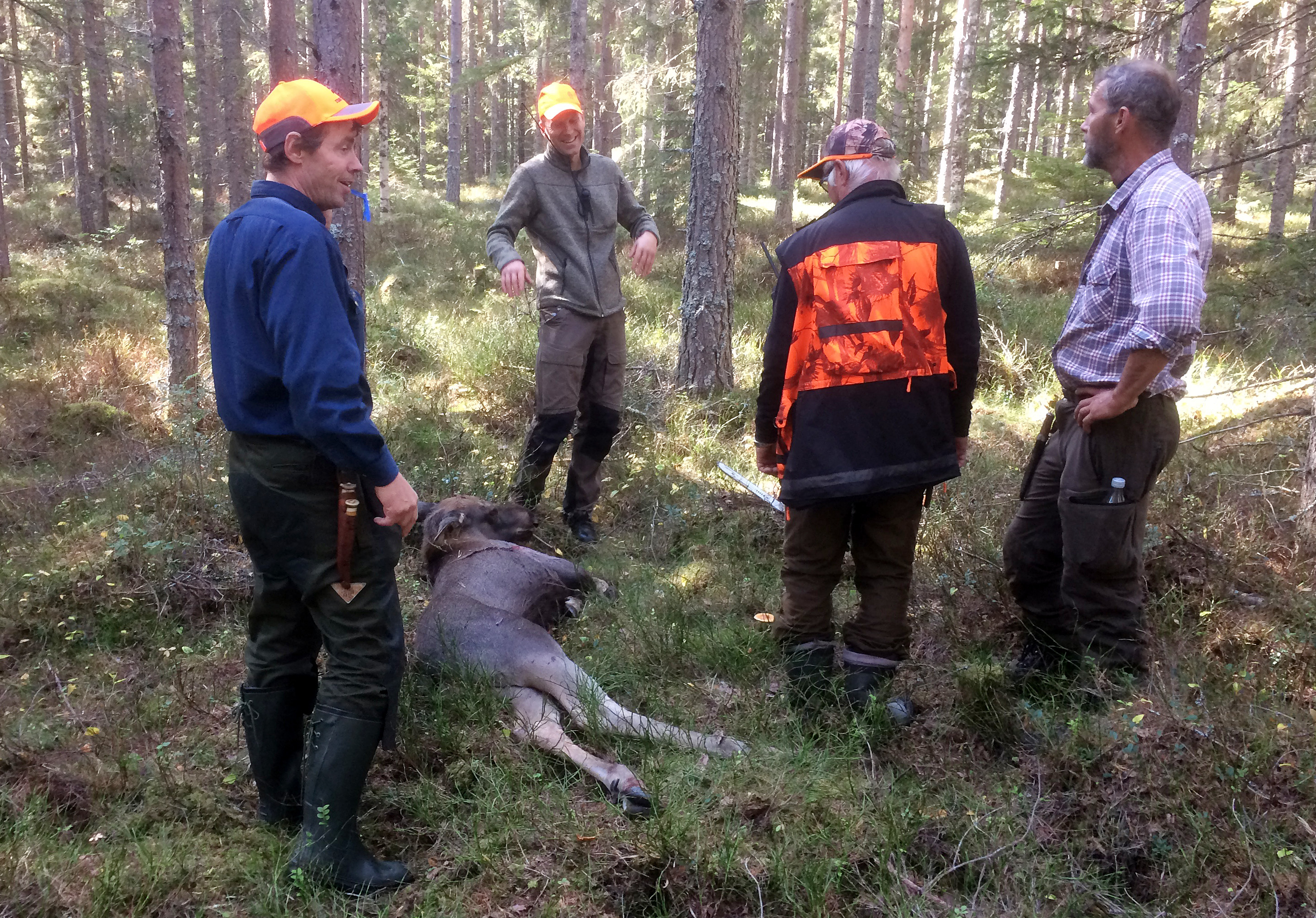 Jörgen sköt en kalv på Willes skifte. Roland, Jörgen, Lennart och Gunnar.