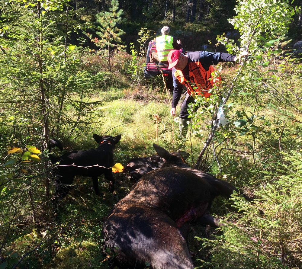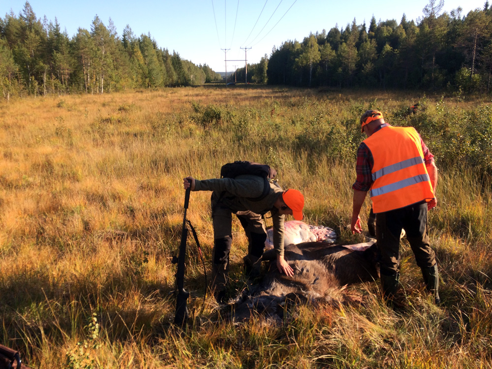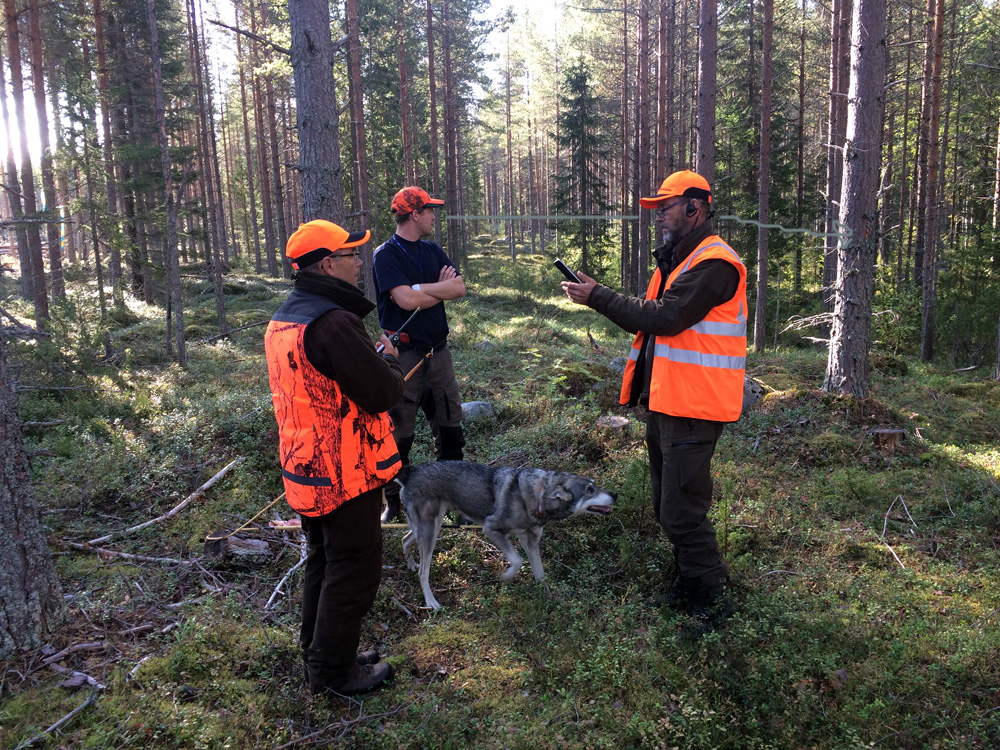 Jörgen kollar den kviga Lingan skjutit väst i marka.